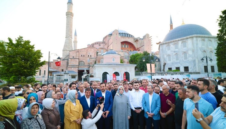 AK Parti İstanbul İl Başkanlığı, Ayasofya-i Kebir Cami-i Şerifi’nin yeniden ibadete açılışının 5. yılında düzenlediği sabah namazı programında Filistin ve tüm mazlum coğrafyalar için dua etti.