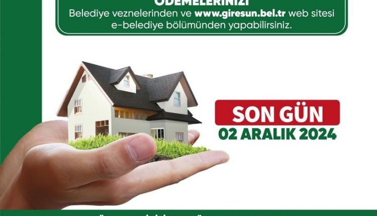Giresun Belediyesi emlak vergisi ve diğer ödemeler için vatandaşlara uyarıda bulundu. Belediye tarafından konuyla ilgili olarak yapılan açıklamada; emlak vergisi, işyerlerine ait ilan ve reklam vergisi, çevre temizlik vergisi ve evsel katı atık ücretlerinin 2024 yılı 2. taksit son ödeme gününün 02 Aralık 2024 olduğu bildirildi.