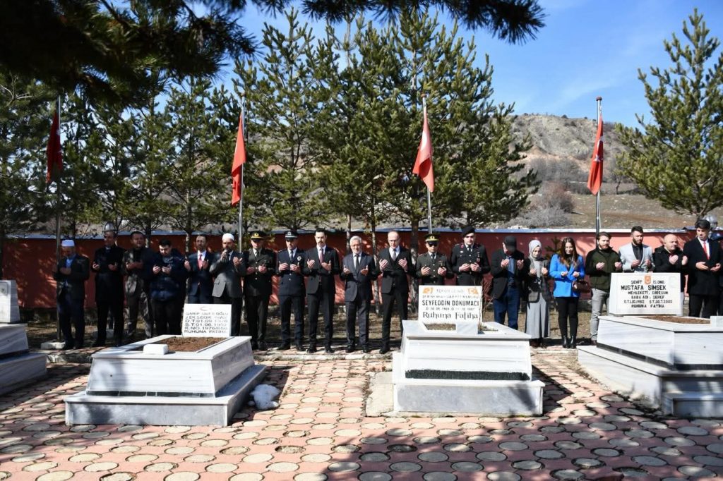 Resmi törenin ardından program ilçe şehitliğinde devam etti. Protokol üyeleri ve katılımcılar, şehit kabirlerini tek tek ziyaret ederek karanfil bıraktı. Şehitlerimizin ruhu için Kur’an-ı Kerim okunurken, vatanın birliği ve beraberliği için hep birlikte dualar edildi.
