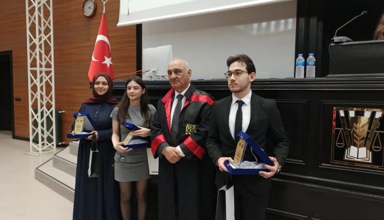 Esra Kutlu 3’lük ödülünü baÅŸta İstanbul Üniversitesi Rektörü Prof. Dr. Osman Bülent Zülfikar ve öğretim üyelerinin de katıldığı 145. Dönem Mezuniyet töreninde Hukuk Fakültesi Dekanı Prof. Dr. Fethi Gedikli’nin elinden aldı.