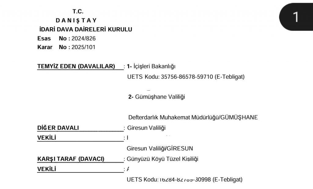 Gümüşhane’nin Kürtün ilçesine bağlı Günyüzü Köyü ve Üçtaş Köyü’nün, Giresun’un Doğankent ilçesine bağlanma talebiyle açtığı dava sonuçlandı. Danıştay İdari Dava Daireleri Kurulu, her iki köyün bu talebini reddeden İçişleri Bakanlığı kararının iptaline yönelik Danıştay Onuncu Dairesi’nin önceki kararını onayladı.