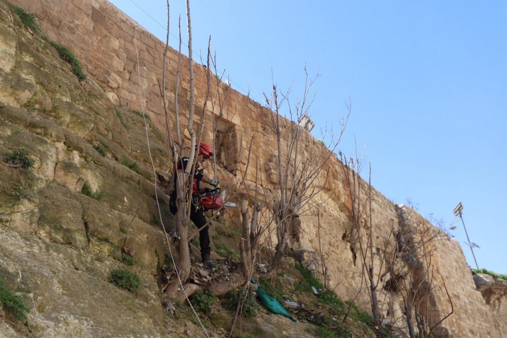 İHH Arama Kurtarma, Genç İHH, Halep Valiliği ve Halep Belediyesi, savaşın izlerini taşıyan tarihi Halep Kalesi’nin çevresinde biriken moloz, atık ve çeşitli kalıntıları temizleyerek hem ziyaretçiler hem de bölge halkı için daha sağlıklı bir ortam oluşmasına katkı sağladı. Ekipler ayrıca kalenin iç kısmında ve duvarlarında biriken toz, çöp ve çeşitli kalıntıları da temizledi. İHH Arama Kurtarma ekipleri iple erişim tekniklerini kullanarak 22 metre uzunluğundaki kale duvarlarının bakım çalışmalarını 12 kişilik ekibiyle gerçekleştirdi. İHH Suriye Çalışmaları Sorumlusu Hamza Dinçer, temizlik çalışmalarıyla ilgili bilgi verdi.