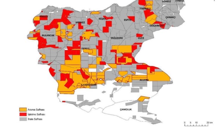 Giresun ili dâhilinde 57 adet işletme ve 43 adet arama ruhsatı olmak üzere toplam 100 adet maden ruhsatı bulunmaktadır. Bu ruhsatların toplam ruhsat alanı (164.500 hektar) il yüz ölçümünün (700.790 hektar) %23,5’i kadardır.