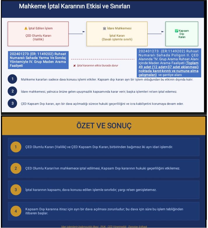 – Müteahhit İşletmelerinin ÇED raporu almadığına dair mahkeme kararı olduğu; bu karara rağmen faaliyetlerin devam ettiği,
