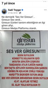 *Sadi Toygar Giresun Medya Platformu Başkan Vekili